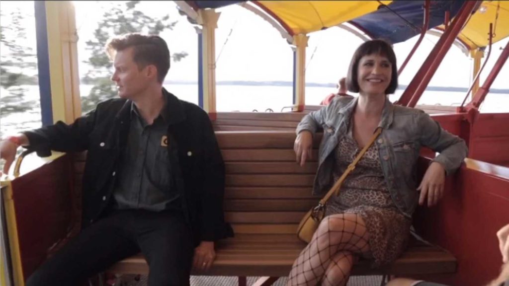 Maija Vilkkumaa ja Ville Salminen soittavat ja laulavat Maijan haikeita ja riemukkaita popkappaleita kesäillassa ja juttelevat yleisölle.